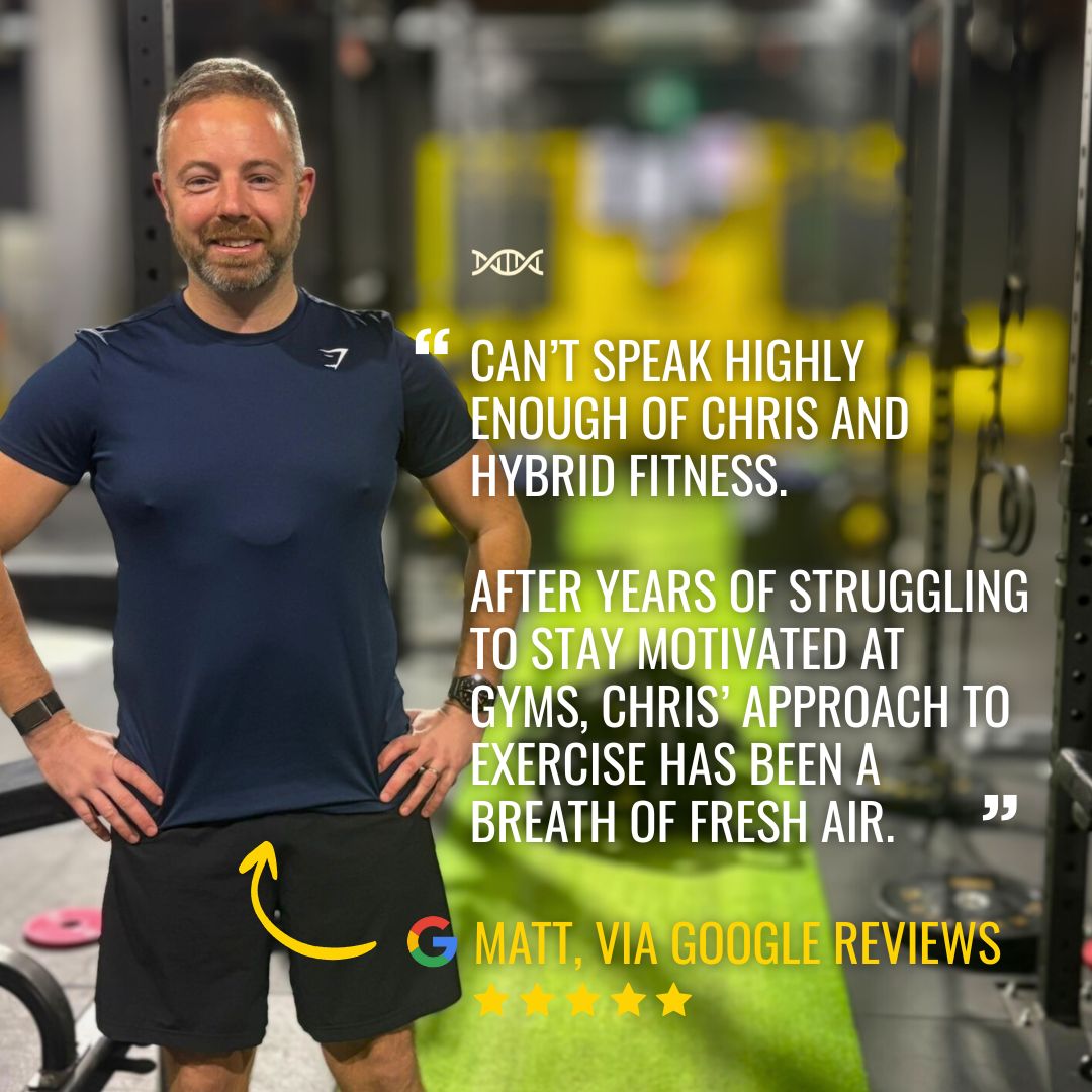Can’t speak highly enough of Chris and Hybrid Fitness. After years of struggling to stay motivated at gyms, Chris’ approach to exercise has been a breath of fresh air. Fantastic classes in which Chris and his team tailor to your ability and constantly keep you motivated to strive to progress at your pace. The whole concept feels so much more relaxed with the extra bonus of PT style tuition. Don’t think twice about going along for a trial, you’ll not look back!